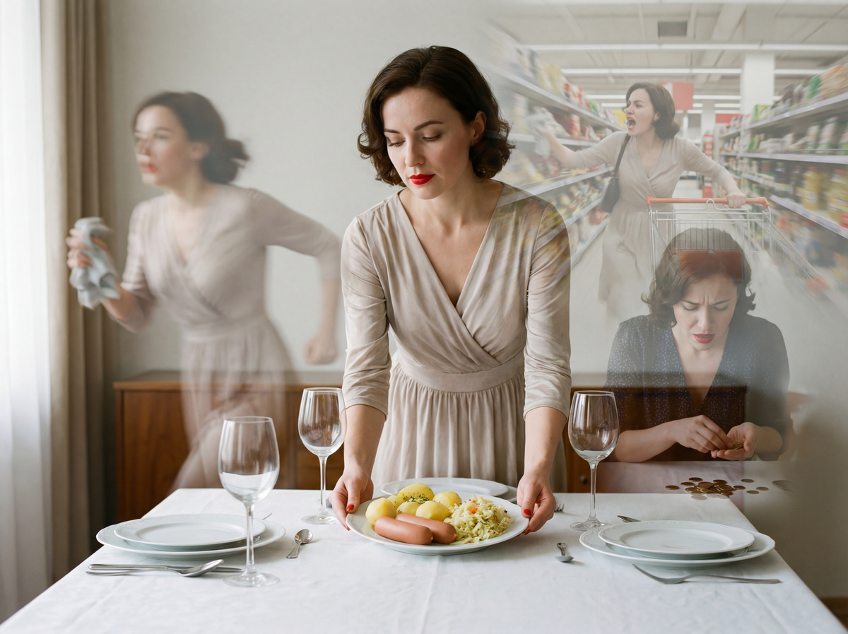 Я почувствовала, как внутри всё сжалось. Она знает. Видит, что это не изобилие, а жалкая попытка. Видит дешёвую колбасу, простенький салат...