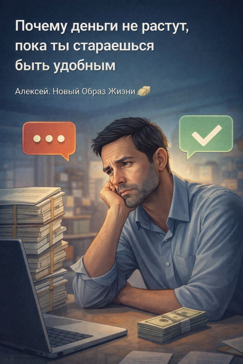 Привет. Это Алексей. Есть одна ловушка, в которую я сам попадал годами. И, честно, до сих пор иногда ловлю себя на этом. Желание быть удобным. Не конфликтовать. Не напрягать. Не просить лишнего. Не говорить неудобное. Ты вроде нормальный мужик. Работаешь. Стараешься. Делаешь больше, чем от тебя ждут. А деньги почему-то стоят. И долго кажется, что дело в рынке. В начальстве. В экономике. В неудачном времени. Пока не доходишь до неприятной мысли: Деньги редко приходят к тем, кто старается быть удобным. Потому что удобный человек - это человек без границ. Он: ▪️ соглашается на условия, которые его не устраивают ▪️ не поднимает цену, чтобы не испортить отношения ▪️ берет лишнюю нагрузку, чтобы не отказать ▪️ молчит, когда нужно обозначить свою позицию И внешне он выглядит надежным. А внутри копится злость. Усталость. Ощущение, что тебя используют. Самое обидное - ты делаешь это добровольно. Не потому что слабый. А потому что боишься потерять. Работу. Клиента. Отношения. Стаб