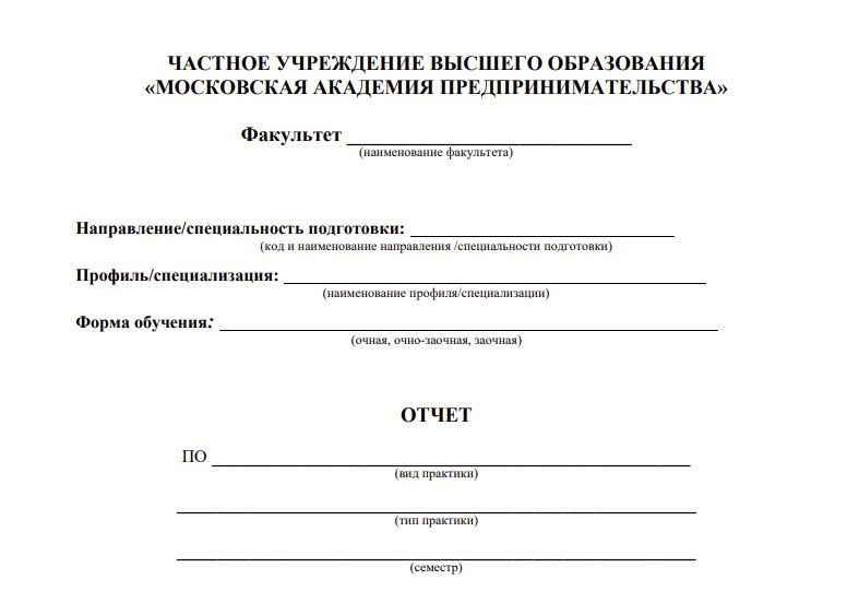 - Полное наименование учебного заведения: Московская академия предпринимательства