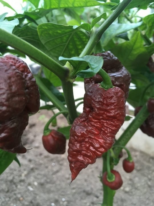 Вид: Capsicum chinense Острота: более 1 млн SHU Высота: ~ 1 метра Срок созревания: до 180 дней Этот сорт очень острого перца является кроссом Naga Morich c Trinidad Douglah. Создателем этого сорта является Трой Примо, известный американский селекционер. Острота экстремальная Растение высотой 100 см при выращивание в теплице и до 60–70 см при выращивании в домашних условиях в горшке от 5-ти литров. Срок вегетации от 200 дней. Перец обладает очень сильным и приятным фруктовым ароматом. Для потребления в свежем виде и для приготовления очень острых соусов. Перец представлен в 🔗Жизнь острых перцев ☺️ Мы в Дзен 😄 Мы в Вконтакте 😌 Наш чат в Тг Peppers