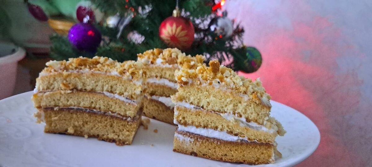 Савытка 300 гр бал, 100 гр акмай, 2 чәй калагы чәй содасы салып, утка куябыз, болгатып торабыз. Бал, май эреп, чәй содасы кабарып менәргә тиеш. Бер массага әйләнгәч, алып куябыз. Икенче савытка (мин миксер савытына) 8 йомырка сыттым, 300 гр шикәр комы, баллы массаны һәм 400 гр он салып сыек камыр ясадым. Шушы камырны 3 кисәккә бүлдем. Табага (минеке озынча таба иде, йомры табага да ярый) пергамент кәгазе җәйдем һәм өчтән бер өлеш камырны салдым. Алдан кыздырып куйган духовкада 180 градуслы 5-6 мин пешереп алдым. Тиз пешә. Пергаменты белән пешкән камырны алабыз, яна кәгазьне җәеп, шулай пешереп бетерәбез. Коржиклар суынган арада крем ясыйбыз. Минеке каймаклы крем иде. 600 гр 20 процентлы каймак һәм 150 гр шикәр комын болгатабыз. Суынган коржикларны тигезләп кисәбез һәм һәр катламы саен крем сылыйбыз. Тигезләп киселгән камырларны изеп, өстенә, як ягына сылыйбыз. Тәмле булсын!