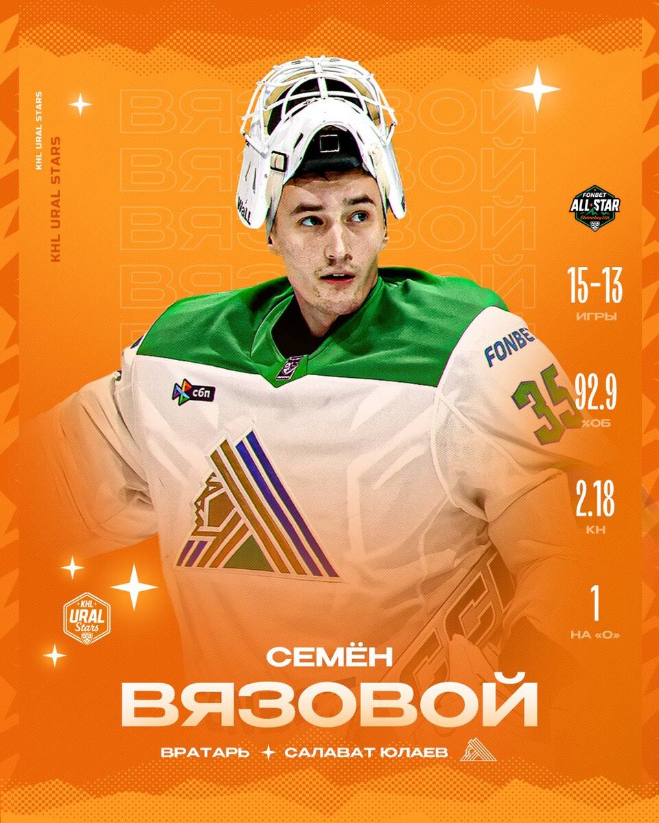 Семён Вязовой 💚 добавит надёжности вратарской бригаде команды KHL Ural Stars!