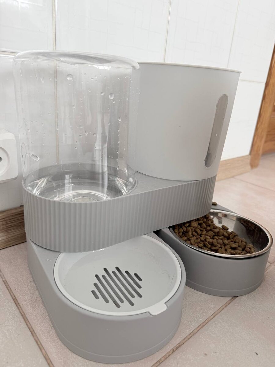 https://ozon.ru/t/ULaE7wZ Это ссылка, если кому понадобится ⬆️ Засыпал полностью едой и налил воду. Нас небыло 13 дней и знаете что? Её хватило 🔥 Даже ещё осталось где-то 600мл воды и половина корма Больше всего я переживал, за воду, поэтому когда выбирал кормушку по объему воды Здесь её 2.5 литра. И фокус в том, что она не портится и не цветет, так как снизу клапан, который не позволяет заходить воздуху в бутылку. Она на столько крутая, что решил с вами поделиться 🙏