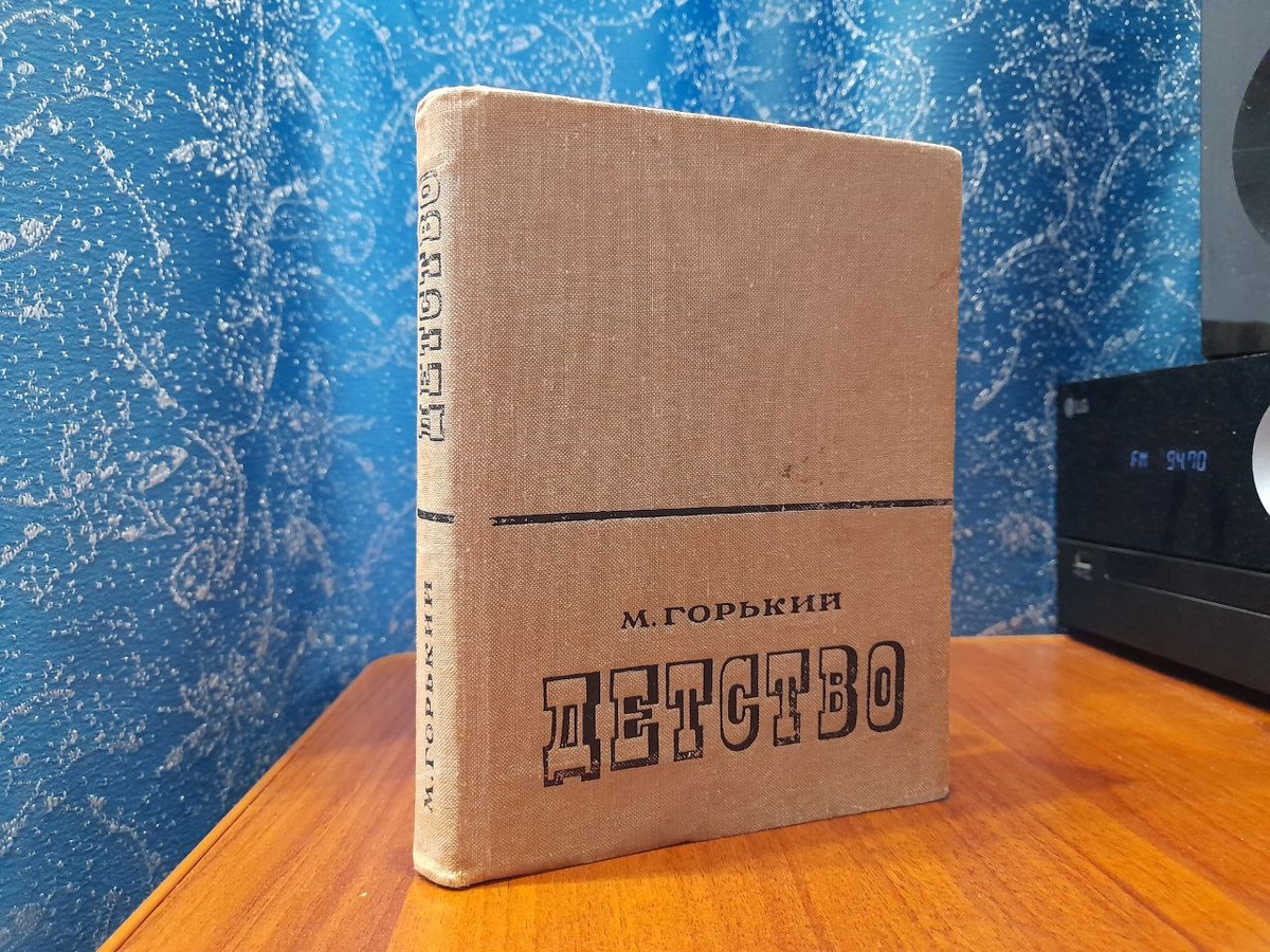 " Максим Горький Первая книга трилогии Начало книги - череда драматичных событий, которые эмоционально потрясают и одновременно захватывают внимание читателя. Глазами трёлетнего ребёнка, мы наблюдаем фрагмент из его жизни; первый, что навсегда отложился в памяти. В тёмной тесной комнате над бездыханном телом отца, плачут мама и бабушка. Следующий эпизод. Мать, разметав волосы по полу, синеет лицом и требует вывести мальчика вон. Она рожает. Чуть позже. Кладбище. Похороны отца. Далее. Корабль, каюта. Смерть новорожденного Максима. С потрясением приходит чувство почтения по отношению к центральному персонажу. Суровость завязки романа, автор смягчает трогательным описанием чувств непереходящий благодарности, любви к бабушке: "До нее как будто спал я, спрятанный в темноте, но явилась она, разбудила, вывела на свет, связала всё вокруг меня в непрерывную нить, сплела всё в разноцветное кружево и сразу стала на всю жизнь другом, самым близким сердцу моему, самым понятным и дорогим челове