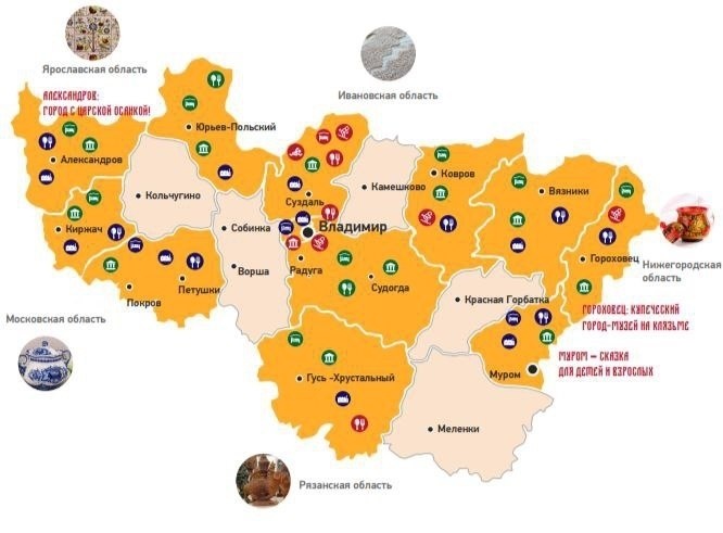 Вместо привычного круга из 9 городов Золотое кольцо дополнят 49 населенных пунктов! Во Владимирской области войдут в Золотое кольцо: г. Александров, п. Боголюбово, г. Вязники❗️, г. Гусь-Хрустальный, г. Гороховец, с. Кидекша, г. Киржач, г. Кольчугино, п. Мстёра❗️, г. Муром, г. Юрьев-Польский.