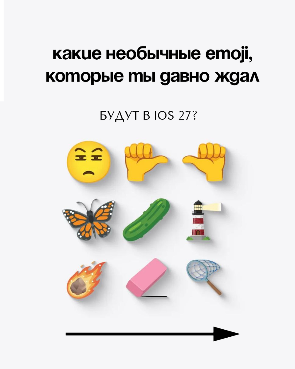 Apple планирует добавить новые эмодзи, которые пока находятся в черновом списке стандарта Unicode 18.0. Окончательное утверждение ожидается в сентябре 2026 года.