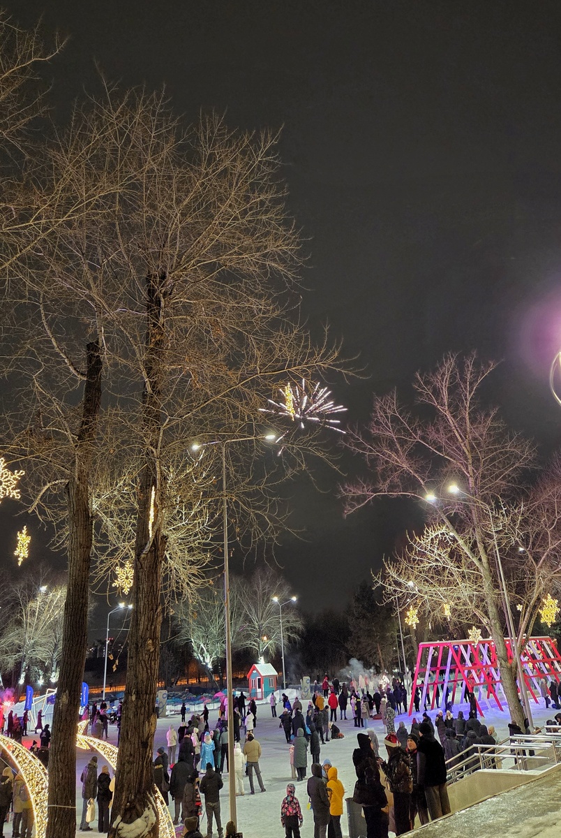 У меня в этом году встреча нового года прошла нетипично, в центре Омска. Была концертная программа, а на улице было тепло и снежно.