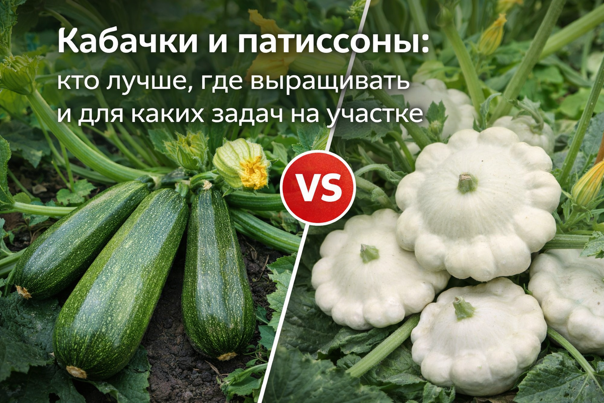 Кабачки и патиссоны часто воспринимают как «почти одно и то же»: родственники, одна группа тыквенных, похожая агротехника. Из-за этого выбор между ними обычно делают на уровне вкуса или внешнего вида. И именно здесь начинается разочарование: кто-то ждёт от патиссонов объёма кабачков, а кто-то надеется, что кабачки дадут тот же результат в заготовках, что и патиссоны.