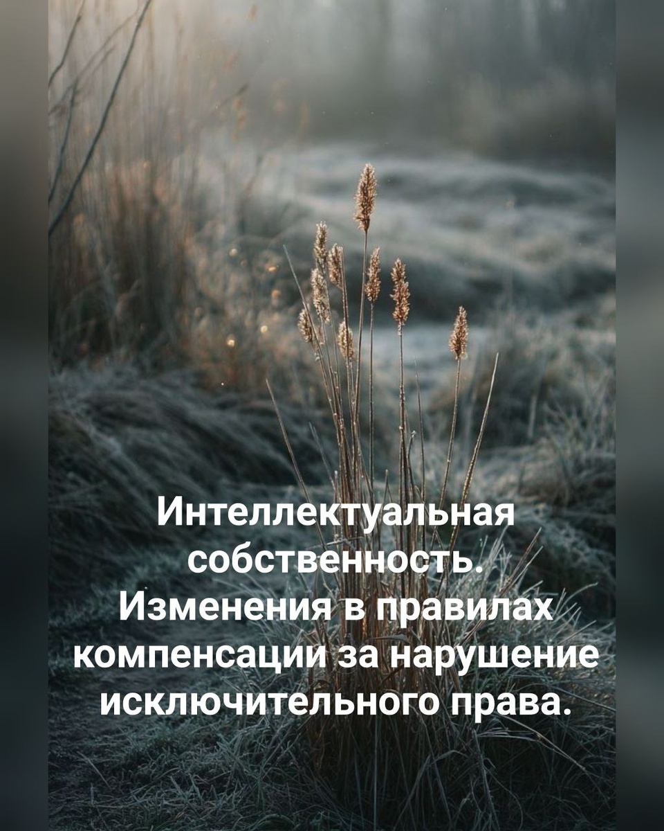 ⚠️Пересмотрены размеры компенсаций для объектов авторских и смежных прав, патентных прав и товарных знаков: максимальный размер компенсации увеличен с 5 до 10 миллионов рублей. Минимальный размер компенсации увеличен лишь для патентных прав – до 50 тысяч рублей.