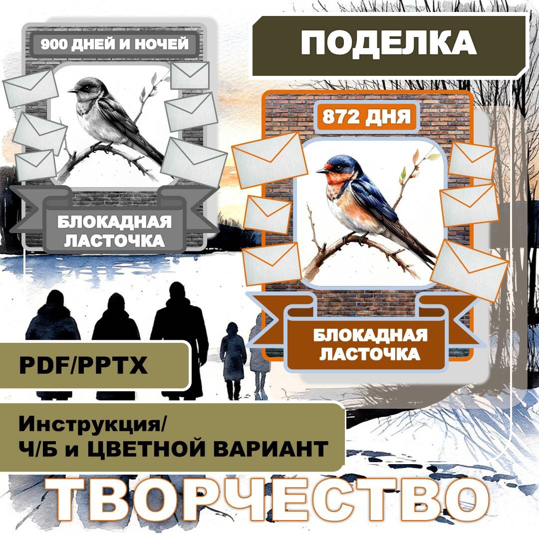 Блокадная ласточка (поделка-аппликация) - можно скачать здесь. Готовое методическое решение для проведения тематического занятия. Творческое задание, идеально приуроченное к Дню полного освобождения Ленинграда от фашистской блокады (27 января). Содержание и технические особенности материала: Смысловые задачи (чему служит создание ласточки):