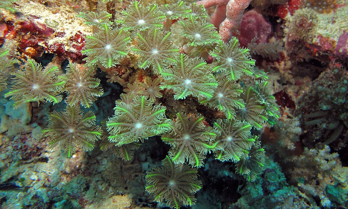Сразу отвечу на вопрос, заданный в заголовке: да, бывают! Хотя в нашем представлении кораллы - это что-то, что точно должно иметь твёрдый скелет/покров, который сформирует после смерти смертельно опасные для кораблей и ну очень нужные для морских биоценозов коралловые рифы. Но ведь в природе, как и в русском языке, нет правил без исключений! Такие исключения еть и среди кораллов. Это мягкие кораллы или, как их нежно, но научно обзывают биологи, альционарии. Отряд альционарий относятся к подклассу восьмилучевых коралловых полипов, то есть каждый отдельный полип - член колонии - обладает восемью щупальцами-лучами, которые используются для ловли и умерщвления фито- и зоопланктона и прочих вкусностей из не очень прозрачной, но при этом богатой питательными веществами воды. Но альционарии используют для питания не только стрекающие клетки своих лучей, но и привлекают для комфортной и сытой своей жизни эндосимбионтов, которые уютно проживают чаще всего в мезоглее, а иной раз и внутри клеток