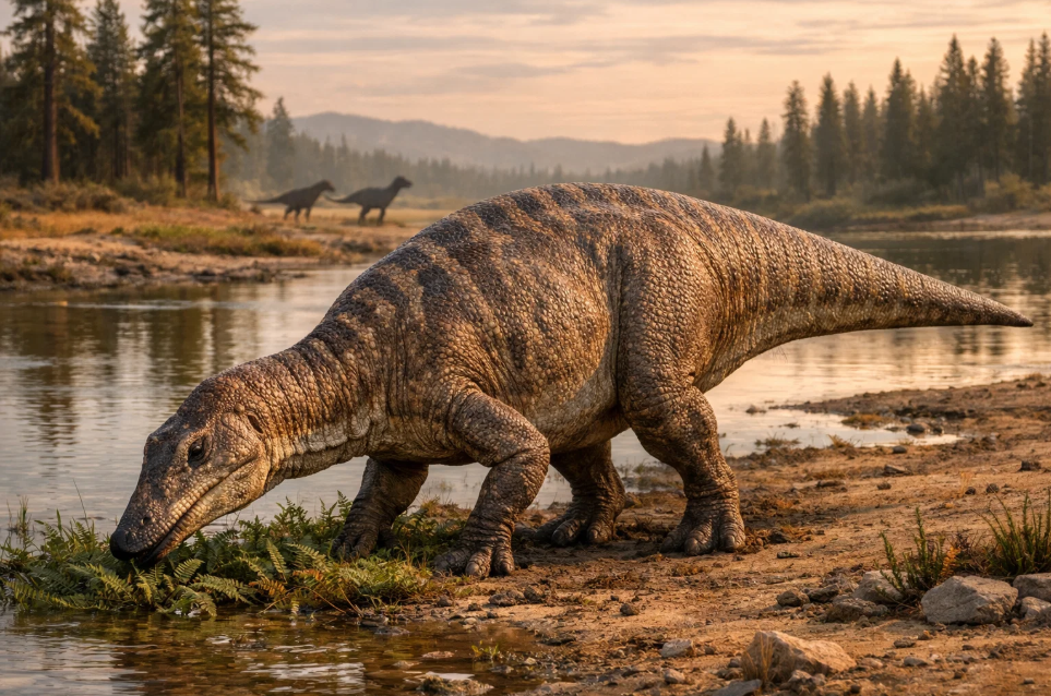 Чтобы понять гилмореозавра, необходимо представить мир, в котором он обитал. Формация Ирэн-Дабасу, датируемая поздним меловым периодом (примерно кампанский ярус, около 75-71 миллиона лет назад), представляет собой отложения древних рек, озер и пойм. Климат в то время был теплым и сезонным, с чередованием влажных и засушливых периодов. Ландшафт не был пустыней в современном понимании; скорее, это была обширная, местами лесистая саванна или пойменная равнина, пересеченная многочисленными водными артериями. Эта экосистема изобиловала жизнью: здесь охотились тероподы вроде алиорама, бродили причудливые теризинозавры, а в небе царствовали птерозавры. Среди этого разнообразия гилмореозавр занимал важную экологическую нишу крупного наземного фитофага.