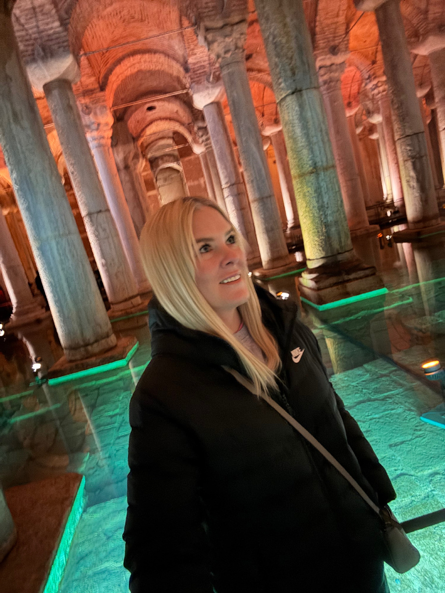 Это древнее подземное водохранилище времён Византии. Колонны, приглушённый свет, вода под ногами, знаменитые головы Медузы.