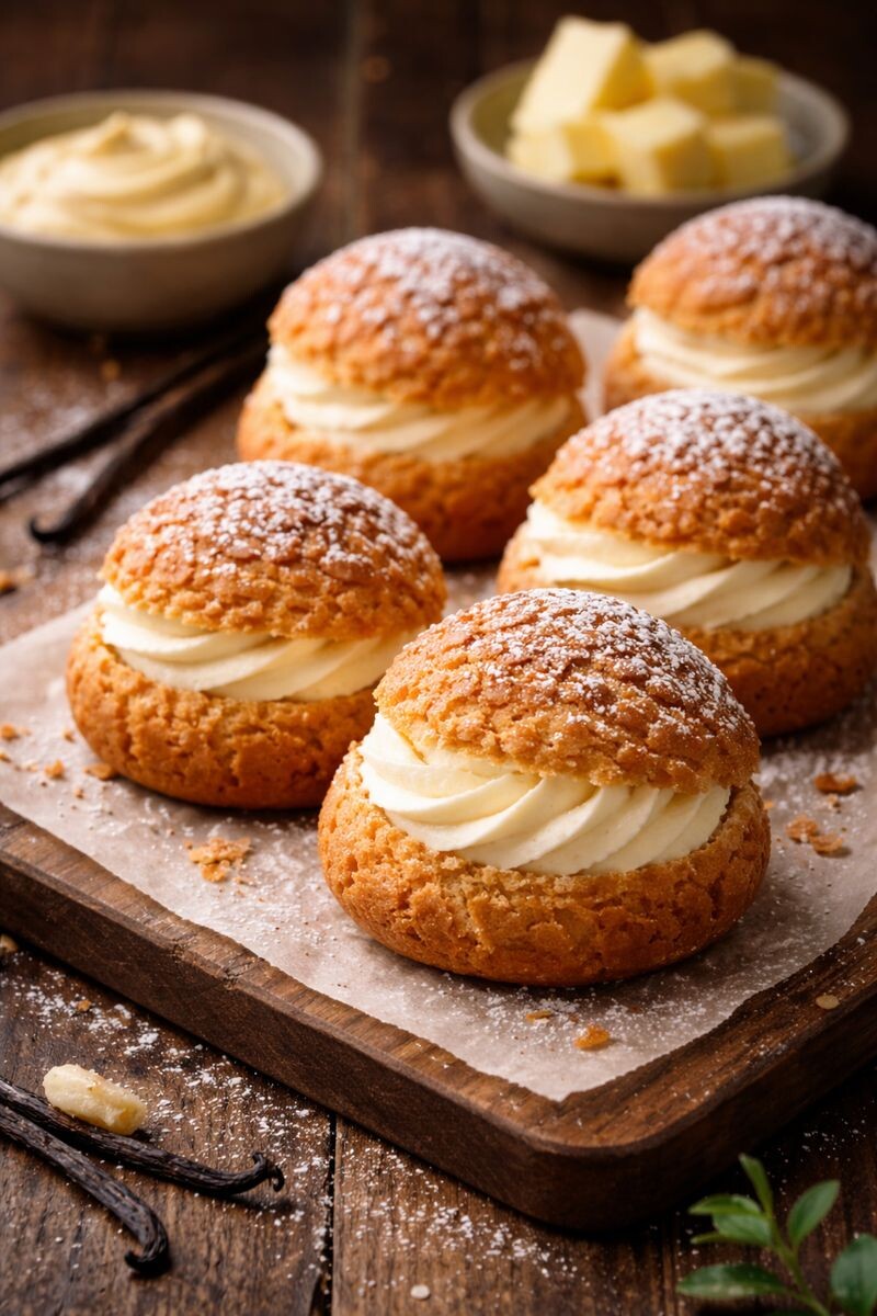 Его не пекут наспех и не едят второпях. Обычно оно возникает: Французская кухня ценит шу именно за это: минимум внешнего шума, максимум текстуры и баланса. Хрустящая оболочка, пустота внутри и крем, который всё решает. Такие нюансы — не из учебников, а из практики — я регулярно собираю в телеграм-канале «Вкус мира». Если интересно, буду рад видеть вас там. Для заварного теста: Для крема (классический заварной): Шаг 1. Основа теста