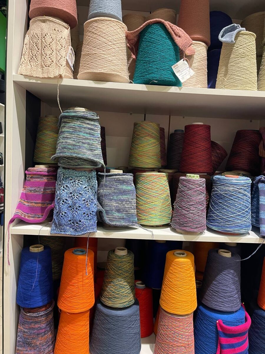 Если ты не рыбак , вряд ли меня поймешь …🤣 Такое разнообразие различных составов , аж голова кружиться. Пришла подобрать подмот к двум пряжам . Что мне ноавится в Олинде- девочки консультанты помогут с составом и цветом, подскажут . А ещё , можно всегда связать образец с любой ниткой и посмотреть . Я смешала свой персиковый кашемир с альпакой и просто меланжевый кашемир , думала хорошо будет. Но не понравилось и не стала брать .