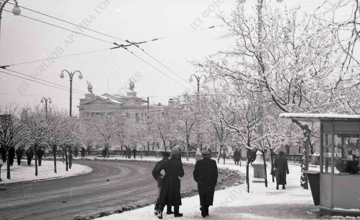 Заснеженный проспект Нахимова в январе 1963 года