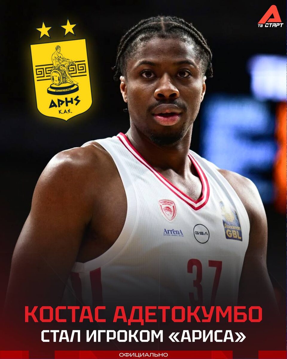 ! Брат звездного игрока НБА Янниса Адетокумбо проведет остаток сезона в «Арисе» на правах аренды. Принадлежит же он «Олимпиакосу». Будем следить за успехами Костаса на ТВ СТАРТ 🙌🏻 Подписывайся на ТВ СТАРТ в MAX📲