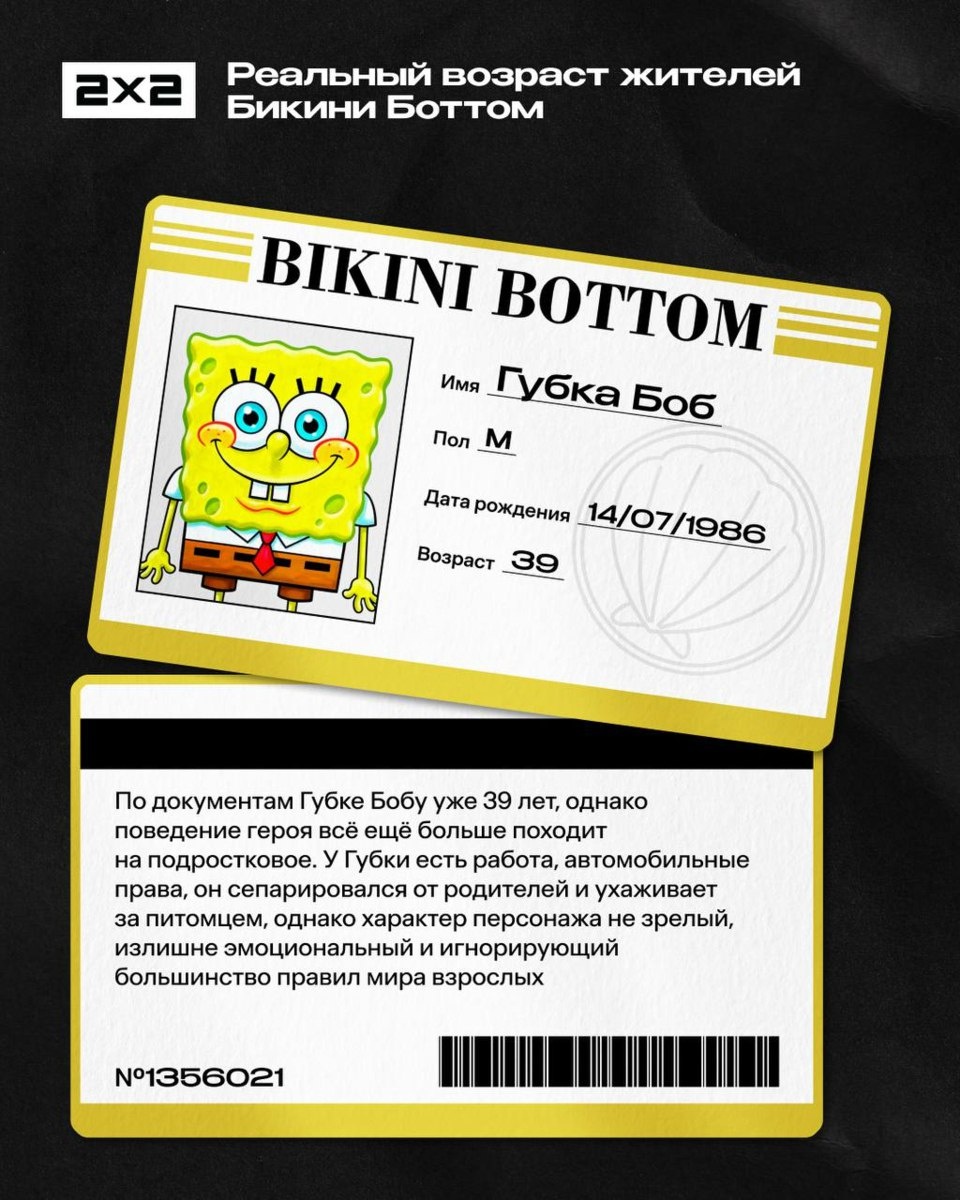 Узнали настоящий возраст персонажей «Губки Боба» и стали к себе чуть терпимее. Многие герои оказались старше, чем ожидаешь.