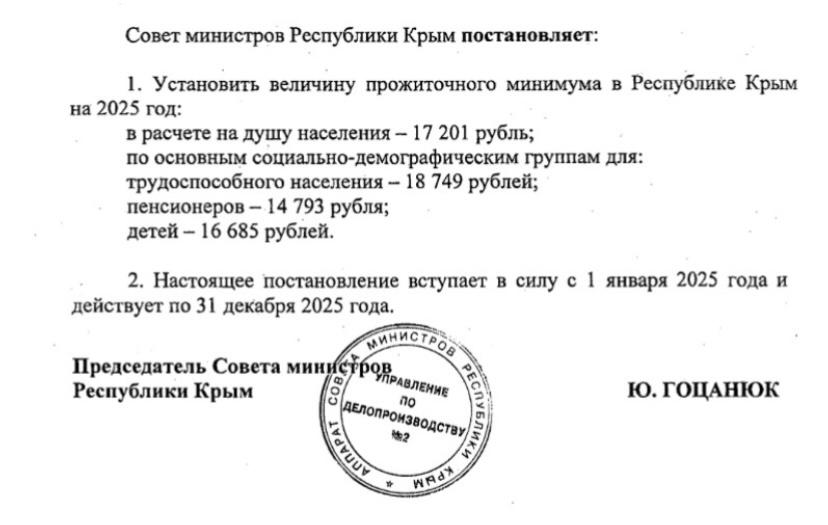 В прошлом году прожиточный минимум в Крыму на одного трудоспособного и одного ребенка составил 35 453 р.