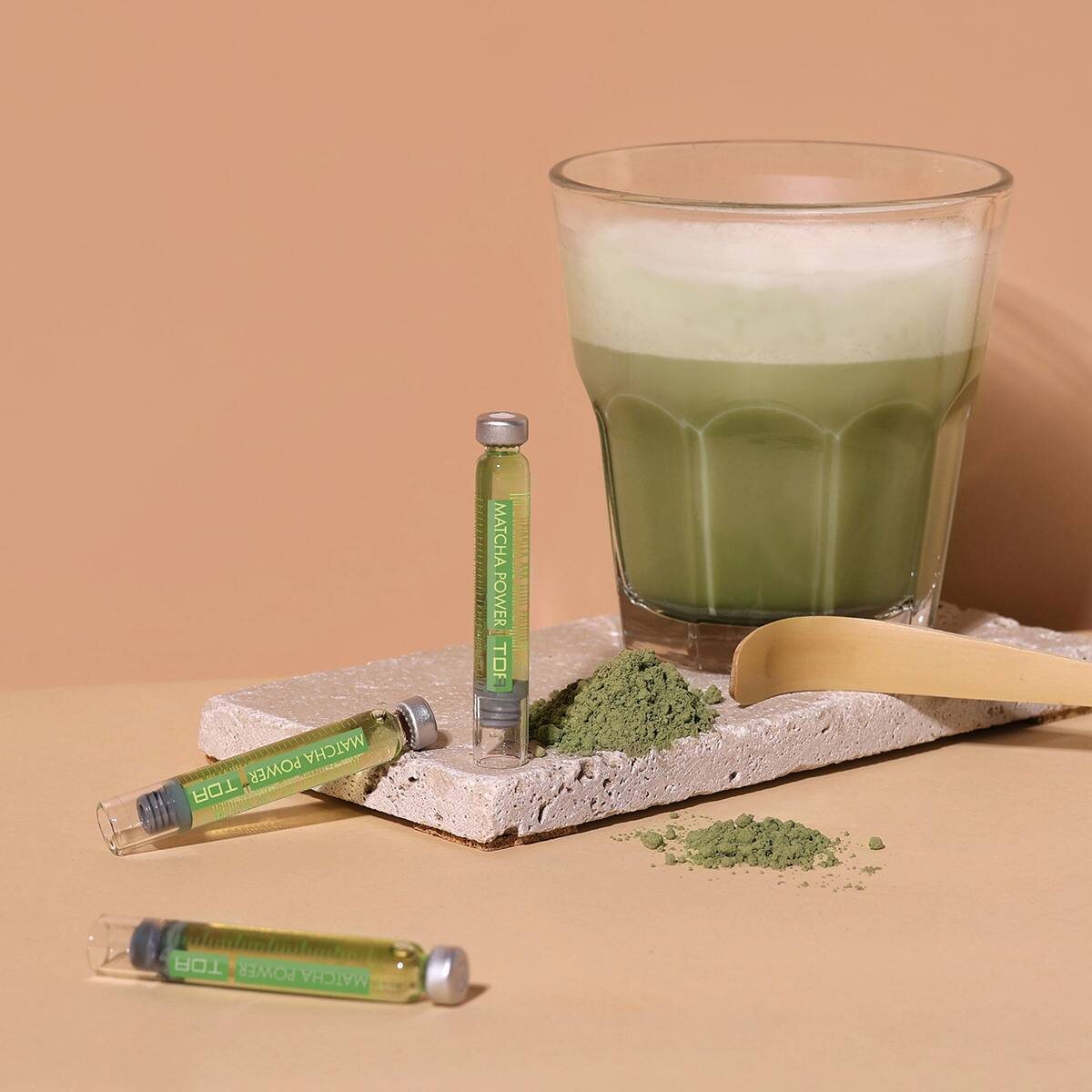 Матча – разновидность зелёного чая. Благодаря высокому содержанию хлорофилла обладает детоксицирующими и ранозаживляющими свойствами, повышает иммунитет кожи, восстанавливает после повереждений, воспалений и восстанавливает эпидермальный барьер кожи. Симбиоз этих компонентов повышает местный иммунитет кожи, что необходимо при травматизации, воспалительных процессах, инсоляции и нарушении эпидермального барьера. Хлорофилл также защищает ДНК, предотвращая связывание с ней нежелательных веществ и защищая наши митохондрии. Антиоксиданты, содержащиеся в сыворотке, нейтрализуют свободные радикалы, восстанавливают поврежденные клетки кожи. Сыворотка Matcha Power TDA - увлажняет и разглаживает эпидермальные морщины: замедляет процессы старения за счет антиоксидантной защиты кожи, возвращая ей свежий вид, сияние и упругость. Сыворотка укрепляет сосуды и капилляры, обладает ангиопротекторным действием. Сыворотка нивелирует уже полученные повреждения клеток благодаря синтезу протеинов, участвующ