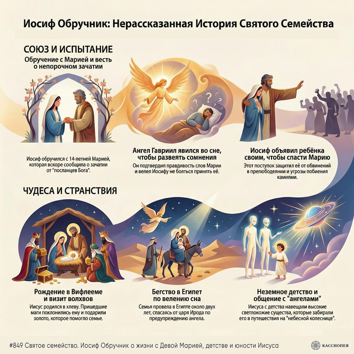 человек и какую роль он сыграл в судьбе человечества? В нашем выпуске номер 849 через рассказ фантома Иосифа раскрывается его земной и духовный путь - путь смирения, доверия Богу и великой ответственности. Это возможность взглянуть за кулисы земной истории, где вера, выбор и космический замысел переплетаются в судьбе одной души. #849 Святое семейство. Иосиф Обручник о жизни с Девой Марией, детстве и юности Иисуса. ВКонтакте: https://vk.com/video-183810725_456242863 YouTube: https://youtu.be/R9l9m5jf8gI RuTube: https://rutube.ru/video/635faf3ffa0f9bc678862891cfac3753/