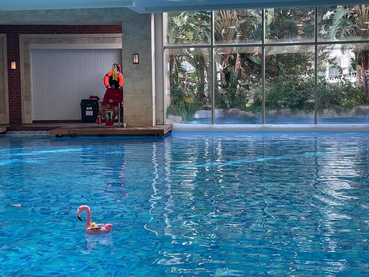 Одинокий фламинго (там, где "белая полоса", можно поднырнуть в открытый бассейн