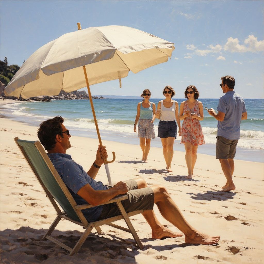 Солнце щедро заливало золотом песчаный пляж, лаская кожу теплом и обещая безмятежный день. Андрей, уставший от городской суеты, с удовольствием вдыхал соленый воздух и наблюдал за игрой волн. Он приехал сюда на выходные, чтобы отдохнуть и набраться сил перед рабочей неделей. Устроившись на шезлонге под раскидистым зонтом, он погрузился в чтение книги, изредка поднимая глаза, чтобы полюбоваться бескрайним синим простором.