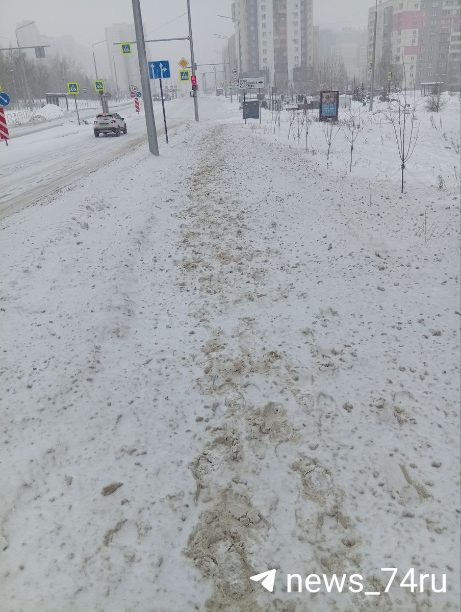 Вместо пешеходной зоны между улицами Академика Королева и Северной сейчас просто куча снега со следами первопроходцев, добавляется еще и каша с проезжей части. А накануне глава Челябинска Алексей Лошкин заявил, что взял уборку дорог в городе под личный контроль и добавил, что взаимодействует с подрядчиками все каникулы, что позволяет реагировать на точечные проблемы. Посмотрим, как изменится ситуация после нашей публикации. Еще мэр добавил, что в среднем за сутки вывозят на полигон порядка 15 тысяч кубометров снега, который убирает 200-300 единиц техники и 400-500 рабочих. Челябинцы, где еще тротуары не почищены? Жаловаться, кстати, можно не только в комментах ⬇️, но и в диспетчерскую Комитета дорожного хозяйства по номеру +7 951 771-73-25. К нему привязаны мессенджеры, поэтому можно не только написать, но и скинуть фотографии проблемного участка.