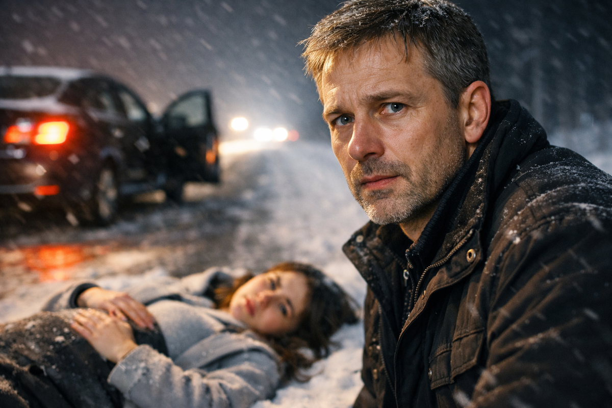 Автобус резко затормозил. Глеба бросило вперёд, пассажиры охнули, водитель выругался громче. На обочине впереди стояла чёрная иномарка с включёнными габаритами, дверь распахнута, из салона валил пар. А рядом, прямо на снегу, лежала женщина — извивалась, прижимая руки к животу. Даже в тусклом свете было видно: ей плохо, ей страшно, ей больно.