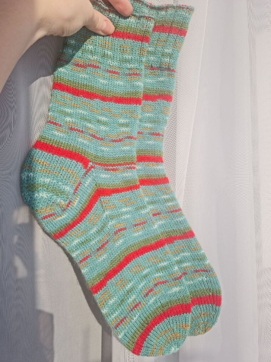 ! Пара 01/2026 Набор классический длинный хвост на 72 петли, спицы 2мм, вес 73 грамма, размер 42. Пряжа regia celebrations, color 09422. Носками не довольна, вес для такой пары очень маленький. Полотно должно быть плотнее. Но видимо из-за того, что вяжу редко, что-то случилось с плотностью🤷♀️ А еще я не понимаю, как раньше носки вылетали как из пулемета, так сейчас все медленно. Это просто #носкилыжи #носкидедамороза
