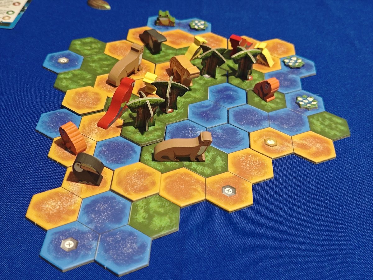 Доброго денечка, друзья🤗 Как ваше настроение? Готовы к возвращению в рабочие будни? Не поверите, но за последние два дня мне удалось сыграть аж 8 партий😍 Сам не ожидал такого! В пятницу приезжал мой друг Роман поиграть в настолочки. Начали мы с ним с Дикая природа Амазонии. Так как он любит Орлеан, основную суть он понял довольно быстро, ведь в Амазонии тоже мешкострой. Играли мы с набором животных А (рекомендуемый для первой партии). Уже с первой партии он умудрялся кое-какие комбушки прокручивать, что не могло не радовать. Как и в любой партии, довольно долго игра раскачивается, потому что в первой половине игры мы набираем более сильные жетоны в наш мешок, зато вторая половина протекала как по маслу. Я победил с очень небольшим отрывом чисто за счет кайманов, так как забрал почти всех. Роман подселял всех понемногу, даже выдру и ягуара смог разместить на острове (а они самые дорогие). Игра ему понравилась, но я так понял, разбираться он в ней не готов. Теперь хочу показать им