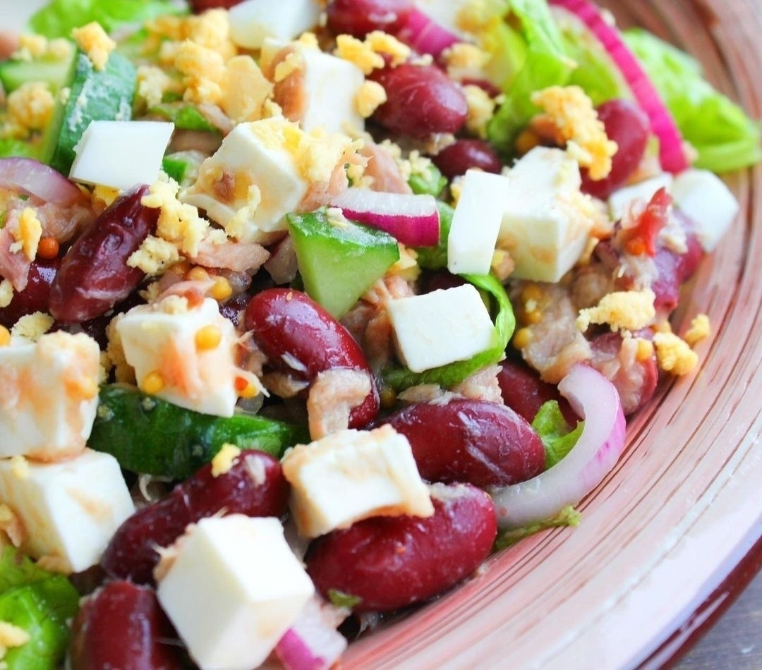 Фасоль, тунец и яйцо - это все источники белка, который легко усваивается. Рецепт так же подходит для тех кто не ест мясо.