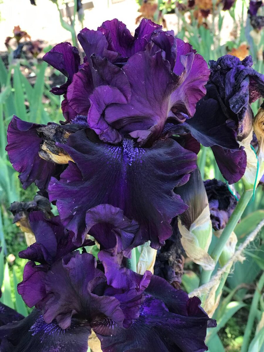 Этот победитель выставочных показов — один из лучших тёмных сортов с гофрированными цветками, происходящий от удостоенного медали Дайкса, Hello Darkness. Он буквально захватит ваше внимание своими широкими гофрированными лепестками, глубокими фиолетово-пурпурными оттенками и бархатистой текстурой. Обратите внимание, как сдержанные бородки подчеркнуты всего лишь легким штрихом белого. Что лучше всего — он легко размножается и обладает исключительно энергичным характером цветения. Продлите свой сезон цветения с 10-12 тройными бутонами на 3-4 ветвях. 🏆Награды: HM '05, AM '07. ▫️Гибридизатор: Schreiner, 2003. 🔸Период цветения: Ранний-средний ▫️Повторное цветение: Нет 🔸Высота цветоноса: 96 см. ✅ В наличии!