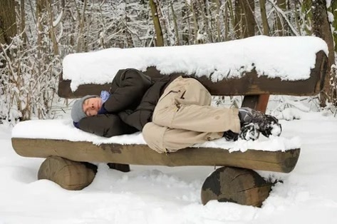 Тут Эльмира увидела на скамейке старика, засыпанного снегом. Он сидел сгорбившись, этот старик, как-то хрипел или храпел. Видимо, бомж. Эльмира хотела пройти, не останавливаясь, - боязно подходить-то. И сумка тяжелая. И надо спешить, ее ждут знакомые, надо салаты резать!