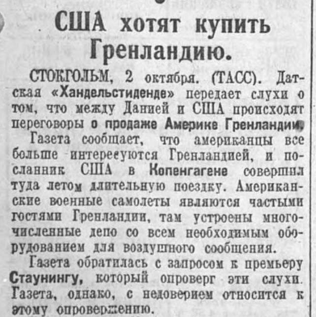 за остров Гренландия. В нынешнее время это была бы сумма, равная примерно $1,6 млрд. Спираль истории делает очередной виток.. https://dzen.ru/id/64536933ab7c1b68f5ddda77