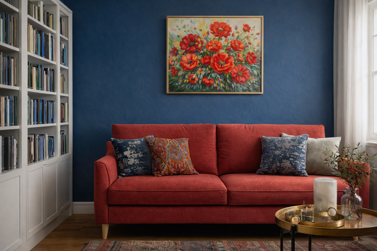 Чернильно-синие оттенки и индиго продолжают набирать популярность в 2026 году. Это насыщенные, глубокие цвета, которые задают пространству характер и визуальную плотность. Они качественно отличаются от мягких голубых и пыльно-синих тонов прошлых лет.