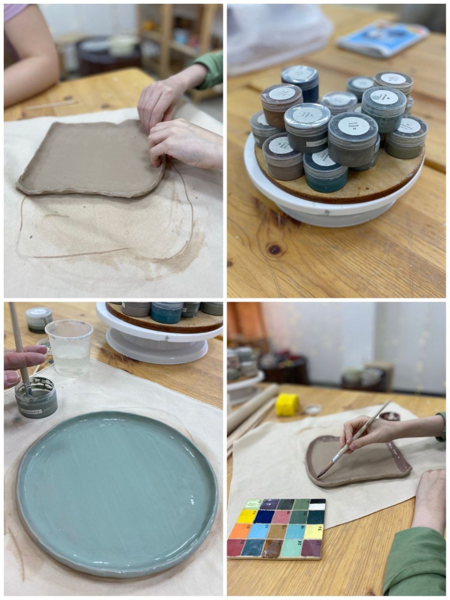 Слепили с сыном себе тарелочки в гончарной мастерской Мохото, покрасили, ждём три недели (сушка, обжиг) и готово!