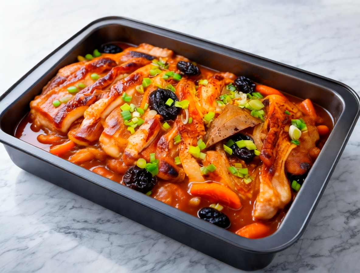 Приветствую вас, гурманы! Пиво с мясом - лучшие кулинарные компаньоны. Сегодня мы представляем простенький, но вкусный рецепт. Все просто замариновать, запечь, съесть. Берем: Делаем: 1. Мясо моем, обсушиваем бумажным полотенцем. Режем на куски размером примерно 5 см. Натираем обильно солью и паприкой. Укладываем в миску, накрываем и отправляем в холодильник. На 8-12 часов. 2. Духовку разогреваться до 180-190°C. 3. Лук чистим и режем кольцами. В форму для запекания смазываем растительным маслом. Выкладываем в форму лук и мясо в следующем порядке: слой лука, слой мяса, снова лук и снова мясо. Как на фото: 4. В миску наливаем 500 мл тёмного пива. Добавляем мёд. Размешиваем до растворения меда. Заливаем пивом мясо. Чернослив и курагу заливаем кипятком на 2 минуты. Равномерно рассовываем ягоды между кусками мяса. Сверху приправляем всё молотым чёрным перцем по вкусу и кидаем лавровый лист. Ставим форму в разогретую духовку на 1,5-2 часа. Подаем с картофельным пюре или рисом, посыпаем сверху