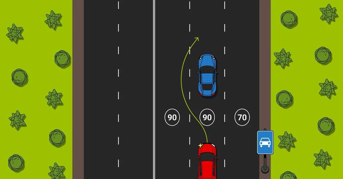 Можно опередить водителя, машина которого едет 80 км/ч, не снижая скорости в 90 км/ч?