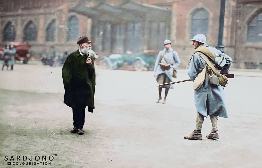 Французский солдат угрожает немецкому мирному жителю во время оккупации Рурской области, 1923 год