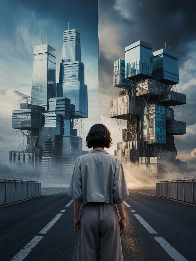 Мегаполис из utility fog раскинулся до горизонта. Башни, которые меняли форму в зависимости от времени суток. Мосты, которые существовали, только когда по ним кто-то шёл. Парки, чья листва была вычислена алгоритмом «оптимального визуального комфорта». Красиво. Эффективно. Согласовано.