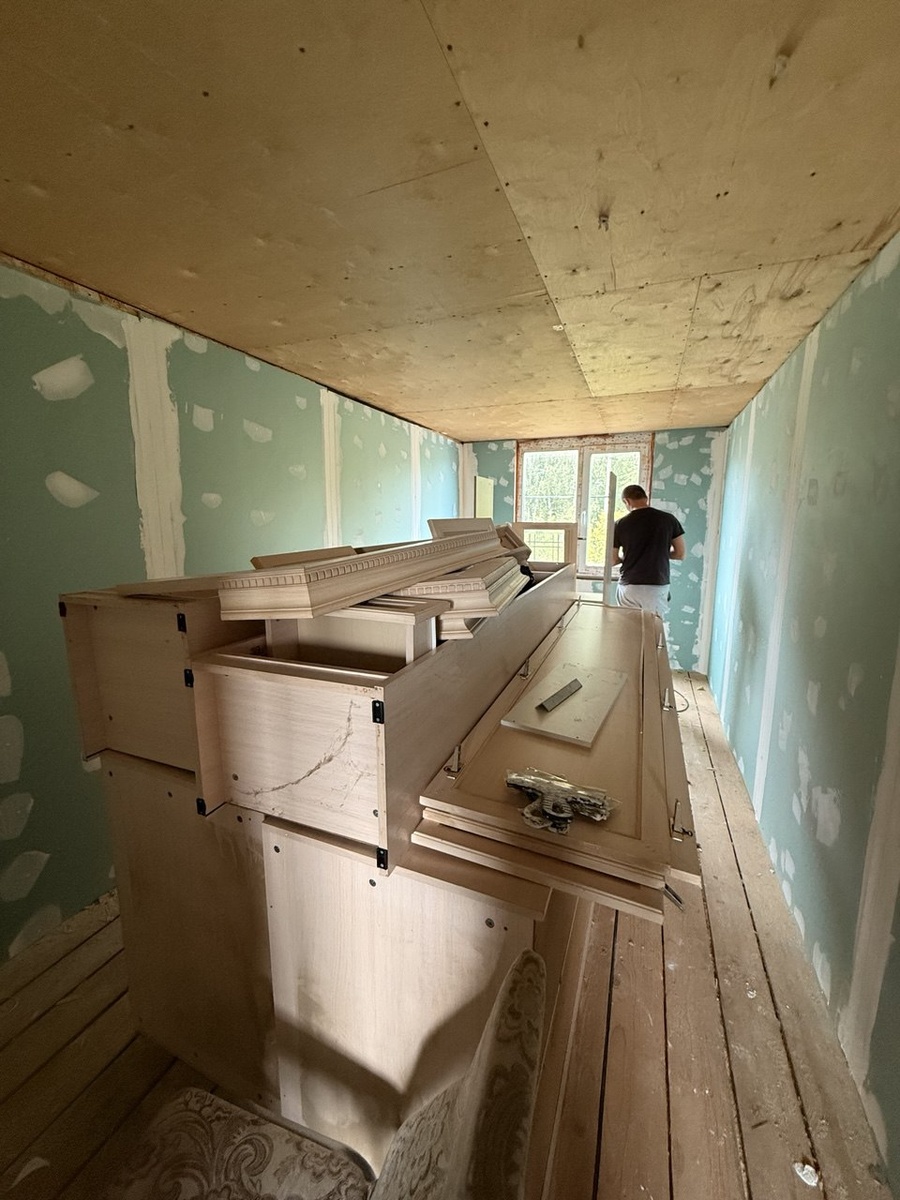 Рассказываю на своём примере. Мы начали с расчистки помещения и шпаклевки гипсокартона, то есть начали со стен.