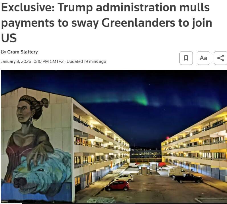 Агентство пишет, что Белый дом обсуждает выплаты от 10 000 до 100 000 долларов каждому жителю Гренландии, чтобы склонить их к присоединению к США. Учитывая, что население острова составляет около 57 тысяч человек, общая стоимость такого «соглашения» может составить почти 6 млрд долларов. Этот шаг рассматривается как попытка преодолеть сопротивление Копенгагена и Нуука, неоднократно заявлявших, что Гренландия не продается. Прямые выплаты населению преследуют цель изменить общественное мнение на острове, где идея независимости популярна, но сдерживается страхом потерять ежегодные субсидии от Дании. 🤗 НАСОНОВ 🔴