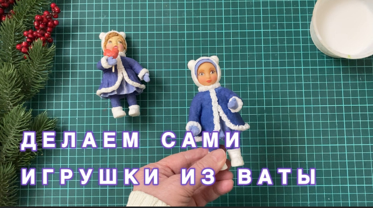 В предыдущем мастер классе мы остановились на том, что сделали теплую шапочку с ушками-помпонами для нашей малышки и заготовку для шубки. Оставили игрушку на рабочем столе для просушки. Итак, для продолжения работы над игрушкой, приготовьте: - рабочий раствор клея ПВА - белую хлопковую вату - цветную вату - металлический стек - шило Так как в заголовке у меня заявлено, что малышка в синей шубке, то для продолжения работы, я беру синюю вату. Конечно же, цвет ваты может быть любым, в зависимости от вашего проекта. Небольшими кусочками цветной ваты, я заполняю всю поверхность заготовки шубки в технике папье-маше. Почему я предпочитаю работать цветной ватой именно в этой технике? Во первый, значительная экономия цветной ваты. Так как, при работе с неокрашенной ватой, можно спокойно убрать или переделать детали игрушки, которые не нравятся. Итак, заполняем поверхность будущей шубки цветной ватой. Наносим клей на поверхность заготовки, тщательно выглаживая кистью каждый кусочек ваты. Там,