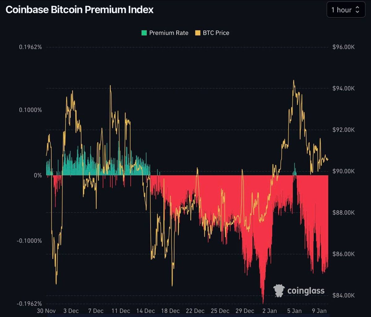 Последний месяц Coinbase выглядит… тяжело. Premium Index почти всё время в красной зоне. Это не абстрактная метрика. Это прямой прокси на спрос со стороны США: ETF, фонды, корпорации, крупные аккаунты. И если упрощать — Америка этот месяц не покупает, а распределяет. Индикатор стал зелёным ровно один раз. В тот самый момент, когда мы на секунду заглянули выше 94k. И всё. Дальше — снова давление. Мне здесь важно не «угадать хай», а понять механику. Когда: — Coinbase в минусе — цена держится на инерции — рынок полон ожиданий «вот-вот полетим» …я каждый раз ловлю одно и то же ощущение. Мы не в фазе топлива. Мы в фазе переваривания. Можно сколько угодно ждать «тот самый импульс», но без возврата чистого спроса из США это будет не ралли, а дерганье на тонком рынке. Цикл всё расставит. Он всегда это делает. Вопрос только — вы сейчас смотрите на цену или на тех, кто реально двигает рынок? Поробнее Волна 4: последний рывок или разворот (Волновой анализ биткоина 2026) https://www.youtu