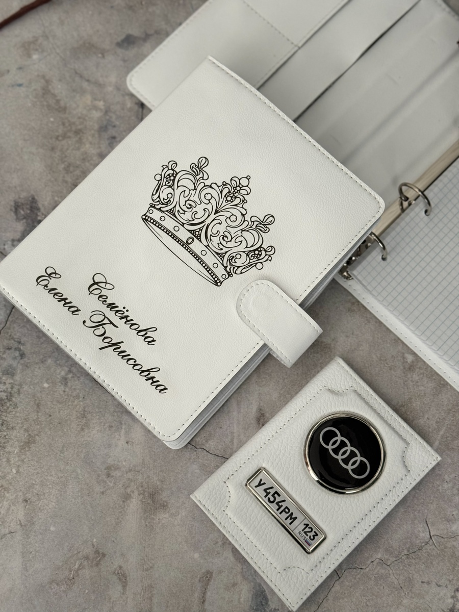 Именной кожаный блокнот и обложка с номером и маркой