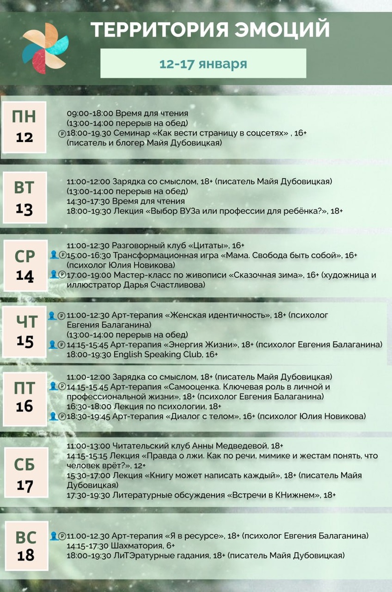 Расписание Территории эмоций с 12 по 18 января ❄️☃️