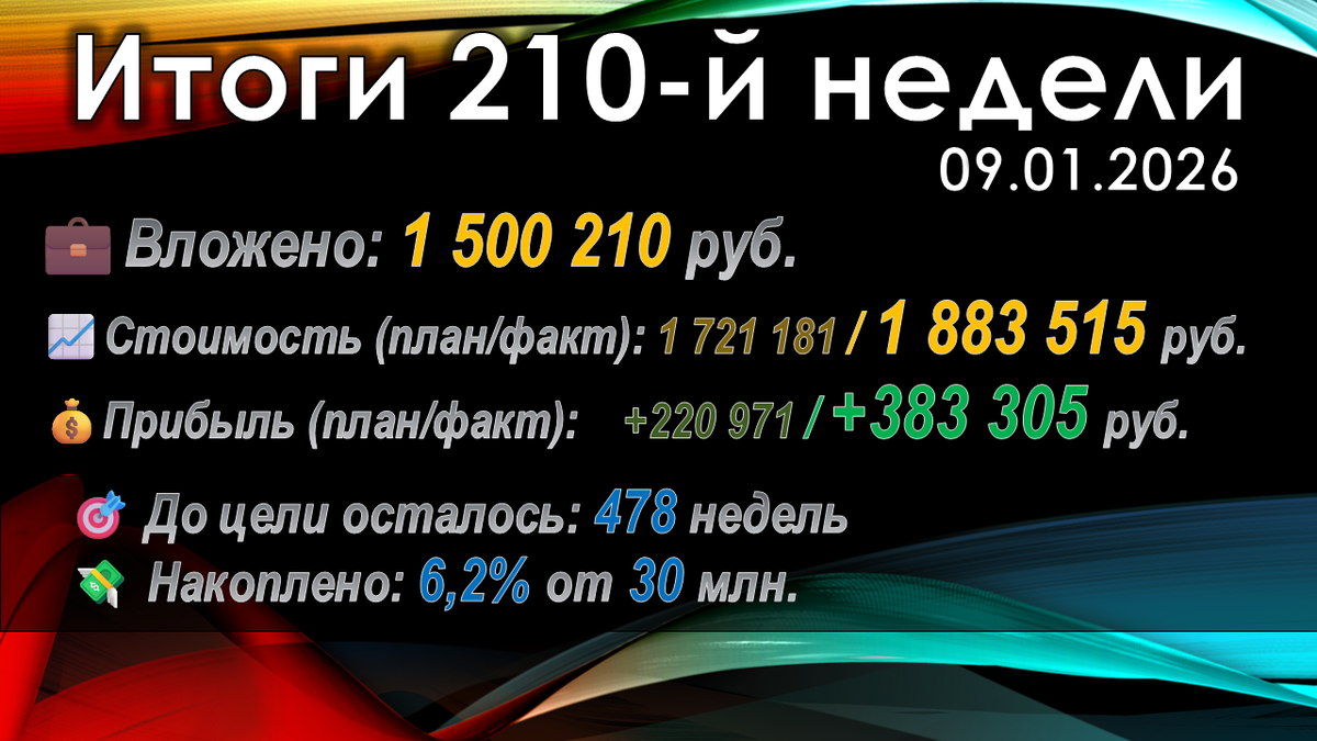 Итак, 210-я неделя позади. Давайте разберём, в какой «рыночной погоде» она прошла и что принесла нашему портфелю. Вперёд!