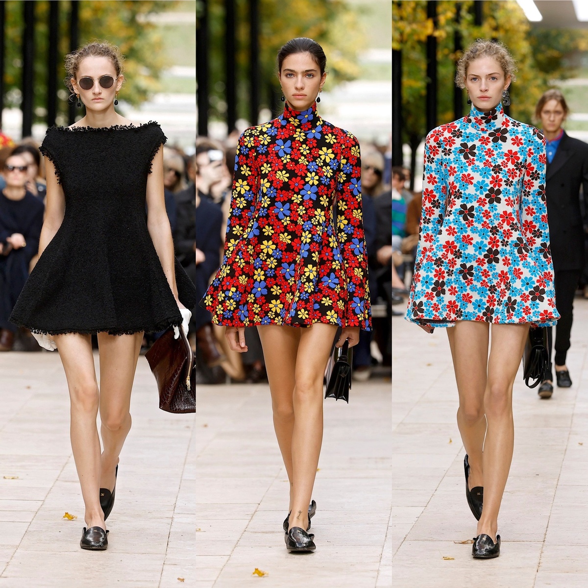 Но есть и новые акценты — дерзкие, почти вызывающие. Платья‑«бэби‑долл» из букле, психоделические цветочные принты и — неожиданно — велосипедные шлемы с логотипами. Почему они здесь? «Когда я вернулся в Париж, я был так рад увидеть, что велоспорт здесь стал популярным. Все эти стильные ребята приходят в студию со шлемами, зацепленными за локти».