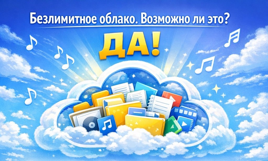 Возможно ли это? ДА! Друзья, мы работаем над амбициозным проектом по созданию безлимитного облачного хранилища (пока для windows). Хотя проект не связан напрямую с музыкой, он может быть полезен музыкантам для хранения аудиозаписей и нот. Для реализации проекта мы используем нейросетевых помощников, аренда которых требует значительных финансовых затрат, но ускоряет разработку. При этом программа покупается один раз, и дальнейшее использование облака абсолютно бесплатно, лимитов на количество загружаемых файлов нет. Держим интригу по поводу того, как это реализовано, но надежность и безлимитность гарантированы. Испортить своё облако вы сможете только сами. Мы обращаемся к вам за поддержкой! Если у вас есть возможность поддержать проект, вы можете пожертвовать любую удобную для вас сумму, обратившись в личные сообщения канала (кнопка слева внизу). Естественно, что все участники получат программу первыми, без дополнительных плат к своему пожертвованию. Имена пожертвовавших будут вписан